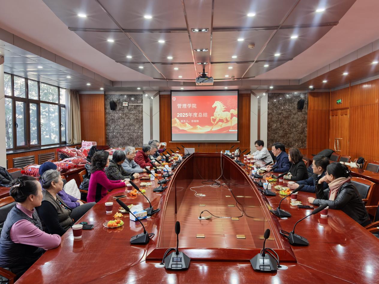 岁序更替,春祺已至。在 2026 年新春佳节即将来临之际,为传承教育初心、凝聚银龄智慧,1月22日下午,管理学院在和平街校区中医药博物馆二楼圆桌会议室举行老教师座谈会。管理学院党委书记李蔓荻、院长李瑞锋、副院长石学峰以及姚园、王玉伟、杜艳艳、张毅超等在职教师代表与姚高升、陈占禄、杨建红等老教师欢聚一堂,共迎新春、共忆初心、共话发展。座谈会由管理学院党委书记李蔓荻主持。