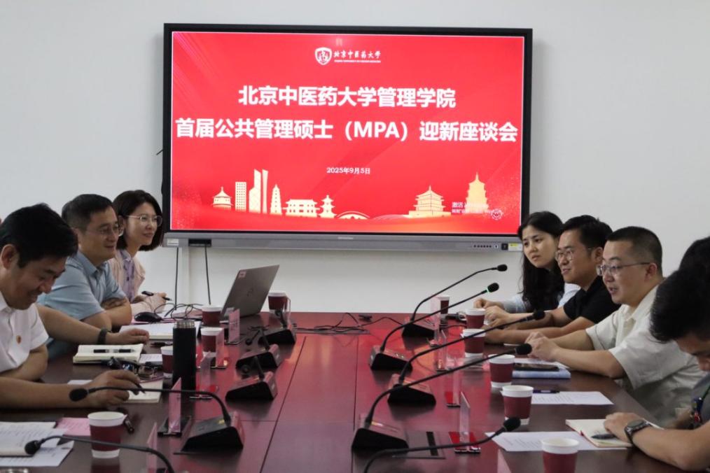 9月5日下午,管理学院在学院336会议室召开北京中医药大学管理学院首届公共管理硕士(MPA)迎新座谈会。校党委书记王瑶琪、党委副书记、纪委书记刘江平出席座谈会。管理学院院长李瑞锋、副院长石学峰、副书记周磊、研究生培养老师刘亚敏以及首届公共管理硕士(MPA)全体学生参会。座谈会由管理学院党委书记李蔓荻主持。