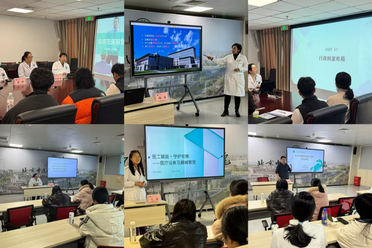本次课程创新采用“部门负责人授课+案例研讨”的双轨模式,突破传统单一讲授的局限。顺义医院院办、教育处、门诊办、医工处、运管处、采供中心负责人依次登台,分别聚焦行政管理协同机制、医疗人才培养体系、门诊服务质控流程、医疗设备创新管理、运营数据分析与绩效设计、采购合规与风险防控六大核心模块,结合鲜活案例与一手运营数据展开系统讲解。同学们通过现场观摩、互动提问、模拟研讨等多元形式,将工商管理专业理论与医疗管理实际场景深度结合,显著提升了对医疗卫生机构运营逻辑的理解能力和实务问题的应对能力。