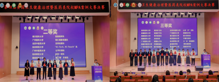 1 1 月 7 日 至 9 日 ,“ 第四届全国卫生健康治理暨医药类院校MPA案例大赛”决赛在南方医科大学(广州校区)举行并圆满落幕 。这次大赛,由第四届全国卫生健康治理暨医药类院校MPA案例大赛组委会、南方医科大学共同主办,旨在推动卫生健康治理领域的研究与实践交流,提升医药类院校MPA学生的案例分析能力。 决赛现场,由管理学院师生组成的两支代表队如利剑出鞘,锋芒毕露,他们以卓越的临场应变能力与优秀的团队协作精神,最终不负众望,斩获佳绩。本次参赛的两支队伍,分别是由杨子慧、杜嫣然、马静怡、江晓彤、潘姝亦几位选手组成的吉祥如意队和黄雨蝶 、周天娇、常加尚、邬克宇几位选手组成的心灵“沪”卫队,由马爽老师担任指导老师,管理学院挂职副院长陈旻老师担任带队。