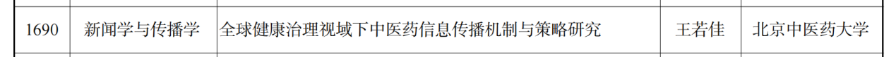 近日,全国哲学社会科学工作办公室正式公布了2025年度国家社会科学基金项目立项名单,管理学院王若佳老师申报的青年项目《全球健康治理视域下中医药信息传播机制与策略研究》成功获批,标志着我院在社科高水平科研项目申报方面再获重要突破!