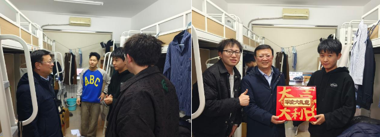 2026年1月22日下午,李瑞锋院长、杜艳艳老师和辅导员张毅超老师在望京校区,对留校的7名学生进行逐一慰问。李瑞锋院长希望同学们能充分利用假期宝贵时间进行自我提升,能够根据自己的目标和需求,认真、细致地计划安排好留校要做的各项内容,为自己的未来发展打下坚实的基础。随后,李瑞锋院长、杜艳艳老师和辅导员张毅超老师在望京校区为留校学生发放了慰问大礼包。